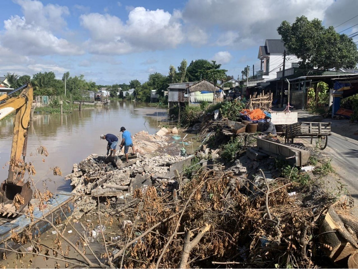 Đội thi công ANRESCO triển khai thi công gia cố kè chống sạt lở do biến đổi khí hậu, trả lại mặt bằng lưu thông cho người dân.